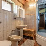В ванной комнате с ванной, биде и душем также доступны банные полотенца, тапочки и халаты.